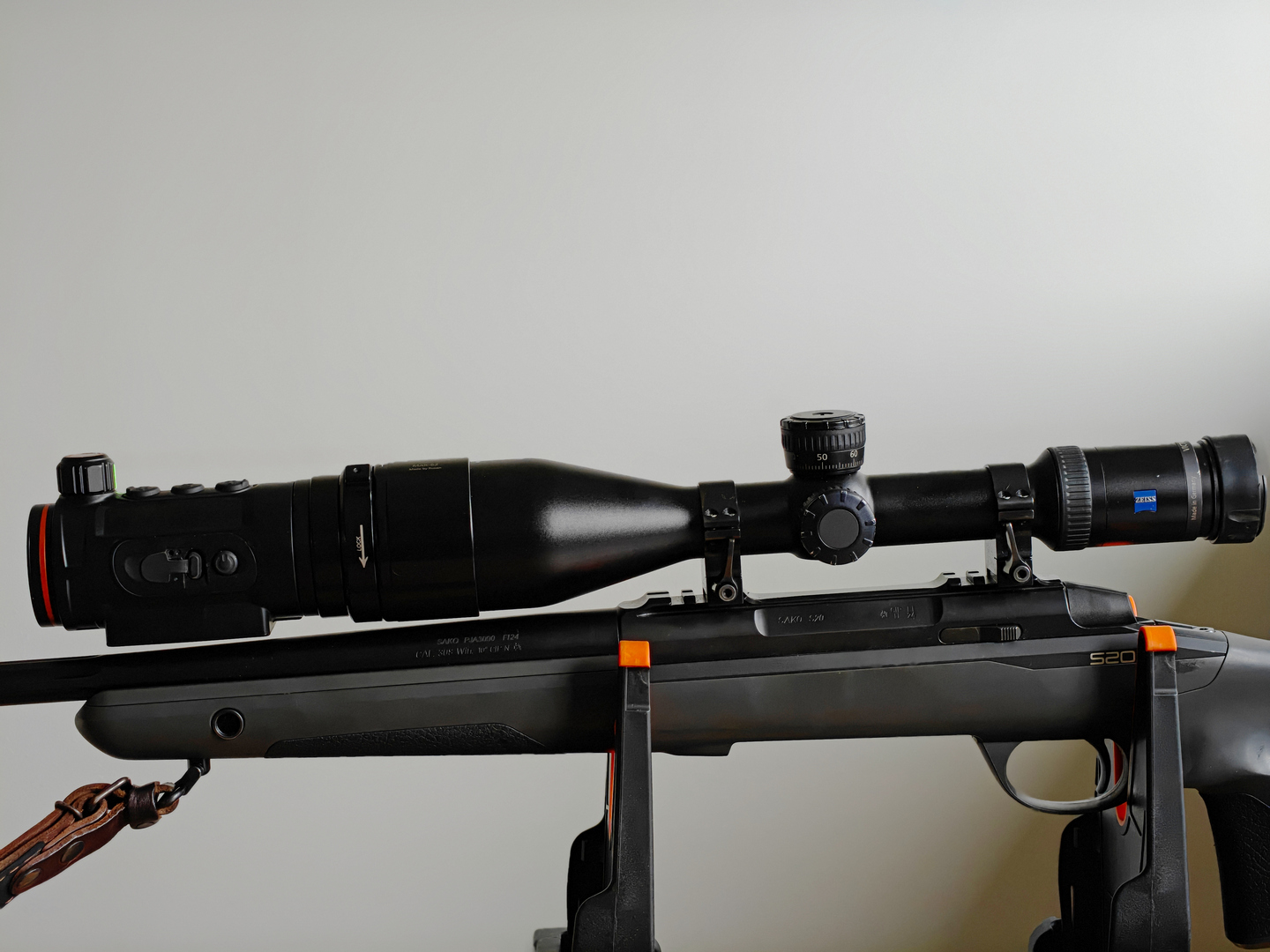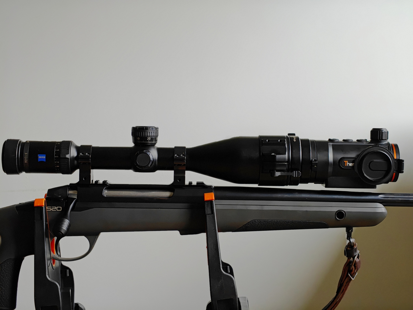 ThermTec Hunt 335 CLIP-ON sihik on ülimalt kompaktne ning kerge, kaaludes vaid 400 grammi. 384×288 12 µm (NETD ≤ 20 mK) sensor, 50 Hz kaadrisagedus, käsitsi teravustatav 35 mm objektiiv ja kõrge resolutsiooniga HD-OLED ekraan tagavad parima pildikvaliteedi. Hunt 335 suudab sisseehitatud AI kaugusmõõtja abil tuvastada inimese suuruse (1,8×0,5m) objekti kuni 1800 meetri kauguselt. Integreeritud aku tagab töö seitsmeks tunniks. Akut on võimalus paindlikult laadida USB-C kaabli abil autos või mistahes akupanga kaudu. Uuenduslik teravustamisnupp ning supermugav kaugjuhtimispult „Smart Ring“ teevad seadme kasutamise üllimalt nauditavaks. Hunt 335 on 64 Gb suurune sisemälu, kuhu on võimalik salvestada tuhandeid pilte ja tundide pikkuseid videosi. Tänu hinna ja kvaliteedi suhtele on Hunt 335 ideaalseim kaaslane kõigile, kes otsivad kuldset keskteed.