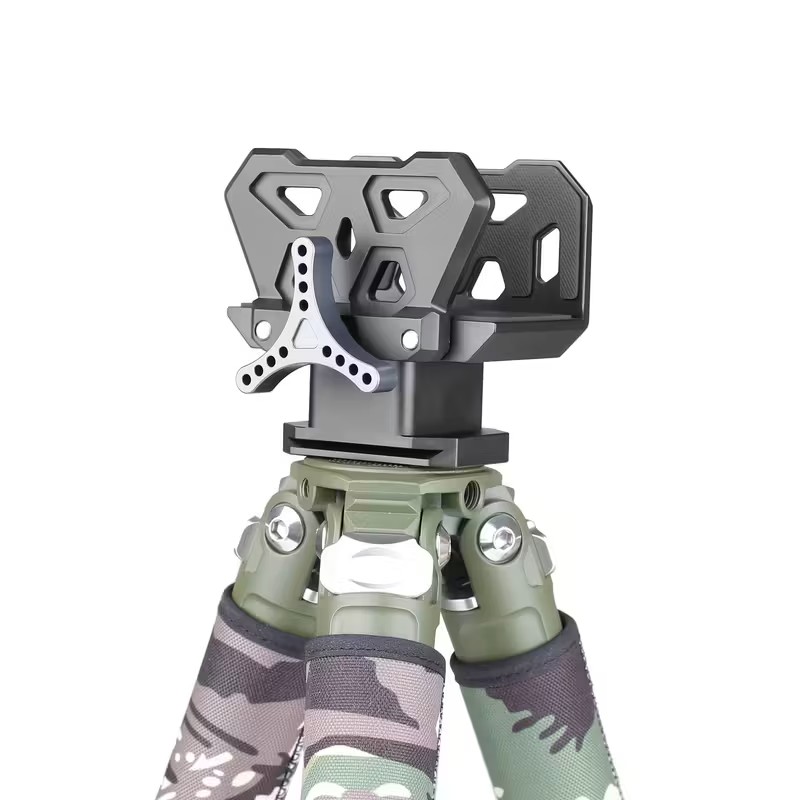 Relva fiksaator kolmjalale. Väga mugav vahetusadapter varitsusjahis ja kütiliinis. Saad relva toetada ja ise „käedvabalt” seista. Kinnitub sama keermega nagu V-tugi. Valmistatud alumiiniumsulamist, sees libisemisvastased kummid.
